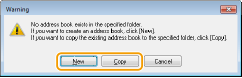 Hvis du vil oprette en adressebog, skal du klikke på [New] (Ny), eller hvis du vil kopiere den eksisterende adressebog til en angivet mappe, skal du klikke på [Copy] (Kopiér).