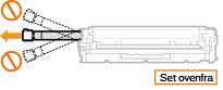 Kontroller, at tromlen ikke er i kontakt med rammen på bakken til tonerpatroners, fordi patronens underside er utildækket.