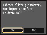 Importen starter. Maskinen genstarter automatisk, når importen er fuldført.