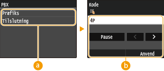 Angiv den eksterne linjes adgangsnummer, hvis du har valgt <Præfiks>