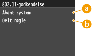 ![]() <Åbent system>Angiver godkendelse af det åbne system, der også kaldes "åben godkendelse".