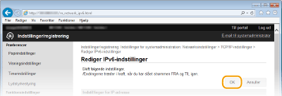 Kontrol af, om indstillingerne er korrekteSørg for, at skærmbilledet for Brugerinterface til fjernbetjening kan vises sammen med din computer ved at bruge maskinens IPv6-adresse. Brug af Brugerinterface til fjernbetjening