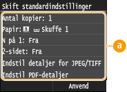 . Hvis du ændrer disse standardindstillinger, så de passer til de betjeninger, du ofte udfører, kan du undgå behovet for at angive de samme indstillinger, hver gang du laver udskrifter.