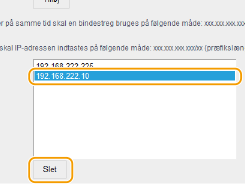 Marker en IP-adresse, og klik på [Slet]. ![]() |