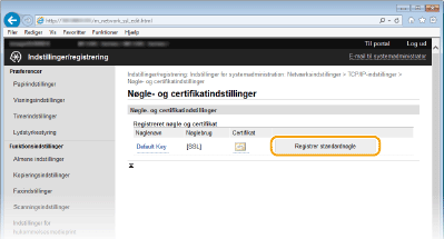 Brug af kontrolpaneletDu kan også aktivere eller deaktivere SSL-krypteret kommunikation fra <Menu> på <Hjem>-skærmen. Brug SSL