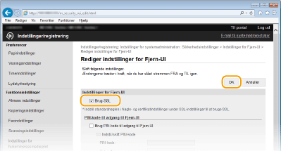 Marker afkrydsningsfeltet [Brug SSL], og klik på [OK].