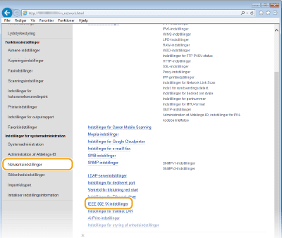 Maskinen kan oprette forbindelse til et 802.1X-netværk som en klientenhed. Et typisk 802.1X-netværk består af en RADIUS-server (godkendelsesserver), LAN-switch (godkender) og klientenheder med godkendelsessoftware (supplikanter). Hvis en enhed forsøger at oprette forbindelse til 802.1X-netværket, skal enheden igennem brugergodkendelse for at bevise, at forbindelsen oprettes af en autoriseret bruger. Godkendelsesoplysningerne sendes til og kontrolleres af en RADIUS-server, der tillader eller afviser kommunikation til netværket afhængigt af godkendelsesresultatet. Hvis godkendelsen mislykkes, blokerer en LAN-switch (eller et adgangspunkt) adgangen fra den udvendige side af netværket.