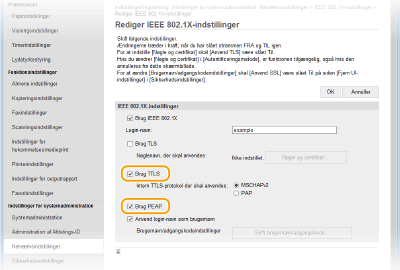 Marker afkrydsningsfeltet [Brug TTLS] eller [Brug PEAP].