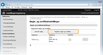 Klik på [Registrer nøgle og certifikat] eller [Registrer CA-certifikat].