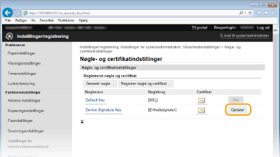 Klik på [Opdater] til højre for enhedssignaturnøglen.