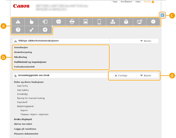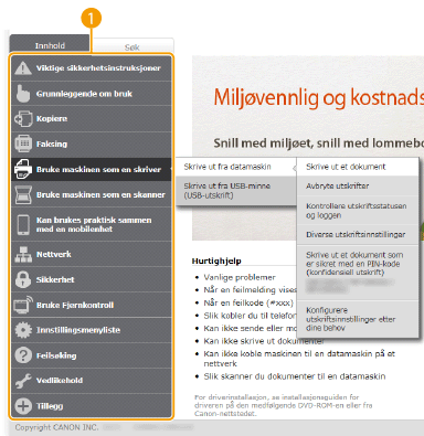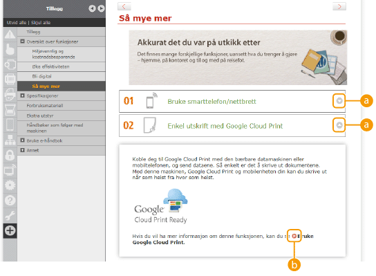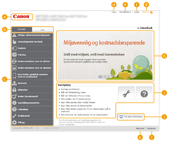 Klikk for å vise informasjon om hvordan du viser e-håndbok, hvordan du søker og annen informasjon.