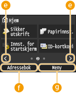 Endre side-knappBruk denne for å vise en annen side i <Hjem>-skjermbildet. Dette fungere på samme måte som å sveipe til venstre/høyre.