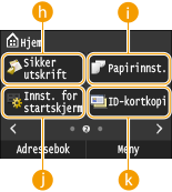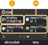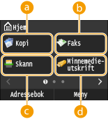 SnarveisknapperVis "Favorittinnstillinger" som er lagret for Kopi, Faks og Skann. Legge til knapper til <Hjem>-skjermbildet