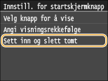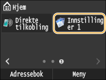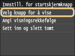Hvis <Hjem>-skjermbildet er fullt og det ikke er mulig å lagre flere innstillinger, slett lagrede knapper og tomrom i <Innst. for startskjerm>.