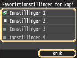 Kryss av i avmerkingsboksen for alle innstillingene som skal vises på <Hjem>-skjermen og trykk på <Bruk>.