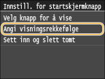 Du kan legge til / slette snarveistaster som vises på <Hjem>-skjermen i henhold til appen din eller etter en foretrukket oppstilling. Du kan også endre rekkefølgen de vises i.