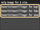 Innstillingene som skal legges til en snarveisknapp må lagres på forhånd som favorittinnstillinger.