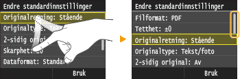 for å justere innstillingene på skalaen. Du kan også justere en innstilling ved å sveipe glidebryteren til venstre eller høyre.