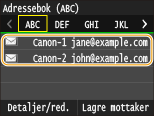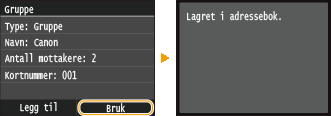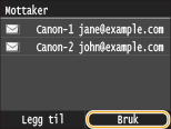 Gjenta trinn 8 og 9 til du har registrert alle mottakere som du vil registrere, og trykk deretter på <Bruk>.