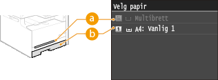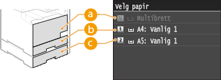 Du må først spesifisere formatet og type papir som er lagt inn i papirkilden.