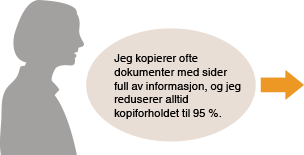 Endre kopiprosenten til 95 %, og registrer den som standardinnstillingen. Fra nå av kan du lage kopier uten å endre kopiprosenten. Endre standardinnstillinger