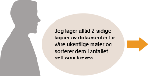 Gå til <Favorittinnstillinger>, og registrer kombinasjonen av <2-sidig> og <Sortere> slått på <På>. Du kan så enkelt bruke denne innstillingskombinasjonen når enn du trenger den. Registrere ofte brukte kopiinnstillinger