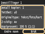 Etter at du har hentet innstillingskombinasjonen kan du også endre kopiinnstillingene etter behov.