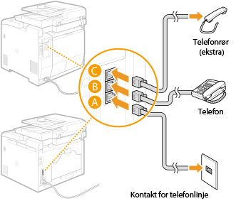 Koble telefonlinjekabelen til kontakten for telefonlinje på maskinen (