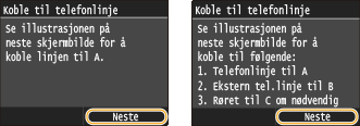 Trykk på <Neste> etter at telefonlinjen har blitt koblet til.
