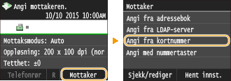 Hvis du vil bruke kortnumre, må mottakeren være registrert i adresseboken på forhånd. Registrere mottakere i adresseboken