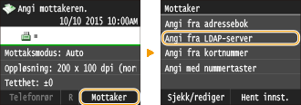 Hvis du har en LDAP-server installert på kontoret, kan du bruke mottakerne som er registrert på serveren. For å angi mottakere går du til en LDAP-server via maskinen og søker deretter etter en mottaker.