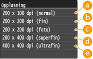 Du kan velge oppløsningen som passer for dokumenttypen din. Desto høyere oppløsningen er, jo tydeligere blir bildet, men det tar lengre tid å sende.