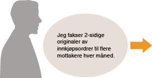 Registrer kombinasjonen av 2-sidig skanning og spesifisert mottaker i <Favorittinnstillinger>. Du kan da enkelt bruke denne innstillingskombinasjonen når du trenger den.Registrere faksinnstillinger som brukes ofte