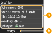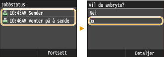 på betjeningspanelet. Du kan også avbryte sending av fakser etter du har kontrollert faksstatusen.