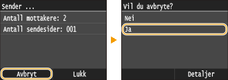Hvis du vil avbryte sending av fakser umiddelbart etter du trykker på