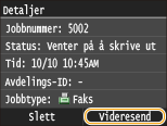 Så lenge minnemottaksfunksjonen ikke er deaktivert, slettes ikke dokumentene i minnet selv etter at de er videresendt. De samme dokumentene kan videresendes flere ganger.