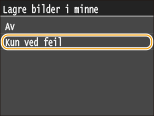 Velg <På> eller <Kun ved feil>