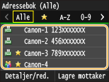 Bare mottakere i adresseboken spesifiseres som en lagringsadresse. For å bruke adresseboken må mottakeren være registrert på forhånd. Registrere i adresseboken