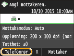 Hvis en ekstern telefon eller telefonrøret (ekstrautstyr) er koblet til maskinen, kan du løfte av telefonrøret i stedet for å trykke på <Telefonrør>.