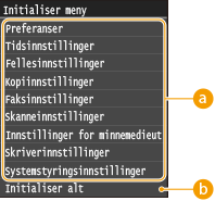 <Nettverksinnstillinger> <Initialiser nettverksinnstillinger> <Ja> og start deretter maskinen på nytt. |