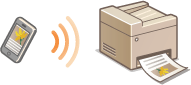 Bruk av NFC sammen med tilgangspunktsmodusDu kan bruke NFC og tilgangspunktsmodus i kombinasjon. Ved å berøre enkelt mobilenheten mot NFC-merket på betjeningspanelet på maskinen kan du lese ut maskinens SSID og nettverksnøkkel automatisk. Utskrift ved å berøre en mobilenhet mot maskinen (NFC) (MF729Cx)