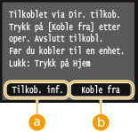 Hvis direkte tilkobling brukes for kommunikasjon og det ikke går noe data mellom maskinen og mobilenheten på en stund, kan tilkoblingen avbrytes.