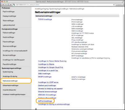 For å endre AirPrint-innstillinger må du logge på i systemstyrermodus.