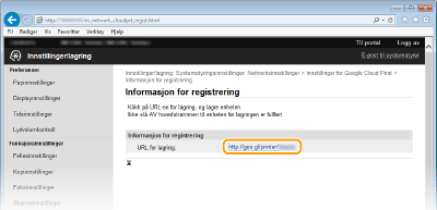For registreringsprosedyren, se i instruksjonshåndboken for mobilenheten eller Google Cloud Print-nettstedet.