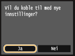 Hvis meldingen <Vil du aktivere trådløst LAN?> vises, trykker du på <Ja>.