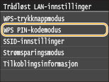 Hvis den trådløse ruteren støtter WPS PIN-kodemodus, genererer du en PIN-kode med maskinen og registrerer koden på nettverksenheten.