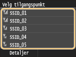 Trykk på <Detaljer> og velg den trådløse LAN-ruteren. For å gå tilbake til den opprinnelige skjermen trykker du på <Lukk> to ganger og deretter én gang på