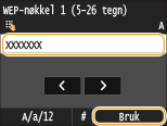 Tast inn nettverksnøkkelen med talltastene, og trykk på <Bruk>. Skrive inn tekst