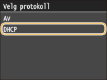 Trykk på<Av>. Hvis du trykker på <DHCP> når disse tjenestene er utilgjengelige, vil maskinen sløse tid og kommunikasjonsressurser ved å søke etter disse tjenestene på nettverket.