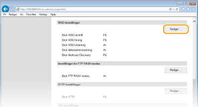 Merk av i boksen for å hente informasjon om maskinen fra en datamaskin via WSD. Det er merket av i boksen automatisk når det også er merket av for [Bruk WSD-utskrift]. [Bruk WSD-skanning]